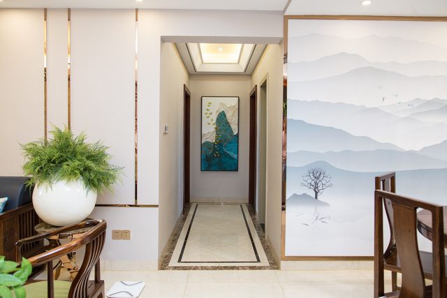 步入家中,公共空間雅典的米色和白色的基調(diào),米色地磚與墻身的米色凝聚了靜謐的氛圍,客廳及飯廳天花簡潔的沙金色金屬燈飾與中式線條的家具端莊典雅,玫瑰金不銹鋼線條設(shè)計與新中式山水掛畫把中式意念蘊藏其中,含蓄秀美的現(xiàn)代中式風(fēng)格,以現(xiàn)代的審美打造富有傳統(tǒng)韻味的空間,采用對稱式的空間布局,利用不同材質(zhì)的紋理豐富視覺,仿佛一幅優(yōu)雅的山河圖,格調(diào)高雅,簡樸優(yōu)美。