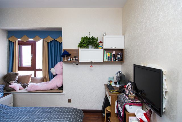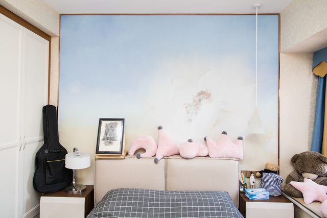 次臥室設(shè)計用材質(zhì)、色彩和細節(jié)來成就空間品質(zhì)。在石材、木材、布藝等主材料使用中,空間整體上保持一種舒適、流暢的感覺??臻g用色統(tǒng)一且中性色彩特別強調(diào)出簡單素雅,而設(shè)計師在沉穩(wěn)素雅的調(diào)調(diào)中加入藏青色的點綴,打破空間的沉悶,并把這種藏青的點綴貫穿始終,讓雅致的空間得到了升華,尤具氣質(zhì)。